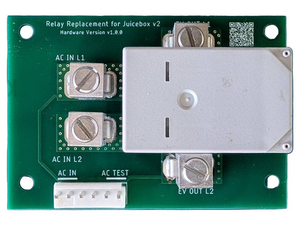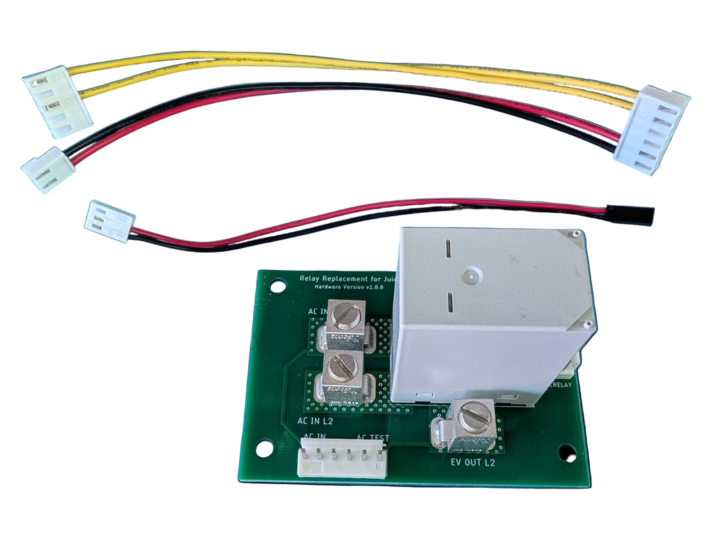 Replacement relay module for Juicebox v2 with either the stock electronics or OpenEVSE replacement module. Fixes common Stuck Relay Error.